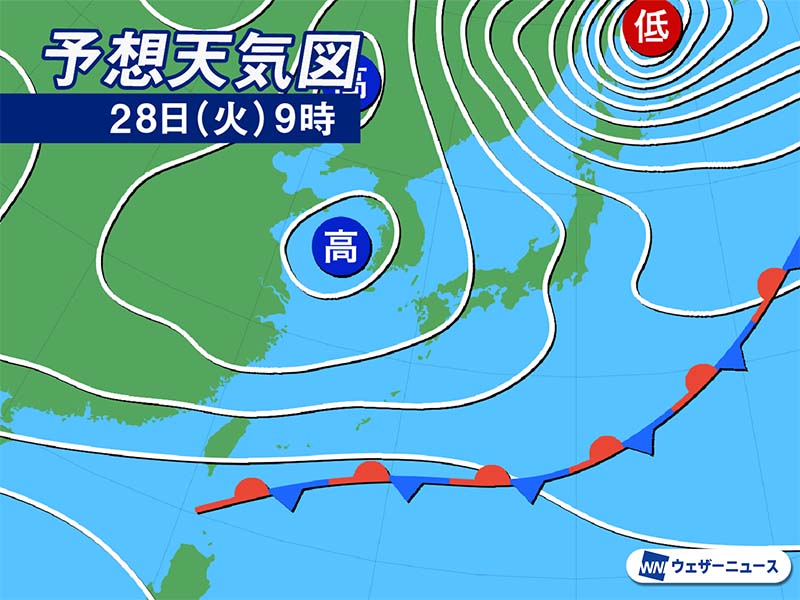 西日本から東海は朝から青空が広がります。午後にかけて大きな天気の崩れはなく、日差しがたっぷりの一日です。