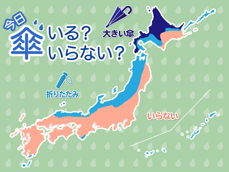 九州南部や紀伊半島でも夕方以降は雨が心配です。外出の際は折りたたみ傘をお持ちください。