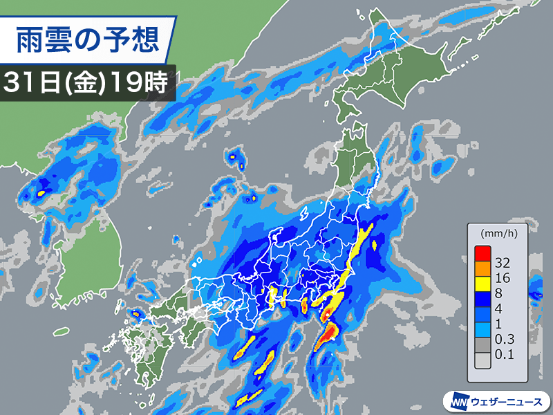 西日本では夕方にかけて、東海は夜まで雷を伴った強い雨に注意が必要です。