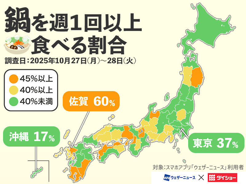 週1回以上鍋を食べる割合が一番多いのは佐賀県