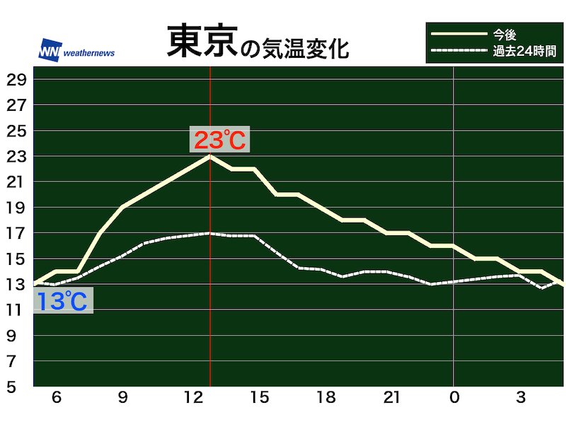 上空に暖かな空気が残ることに加えて日差しが戻ることで気温は上昇します。太平洋沿岸では25℃に近づく所があり、日差しの下では少し汗ばむくらいの体感となりそうです。服装選びにご注意ください。