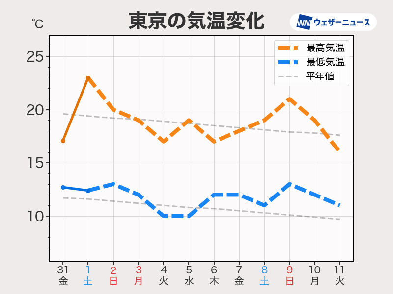 今日1日(土)は、暖かい空気が流れ込む影響で、気温は平年より高くなる見込みです。