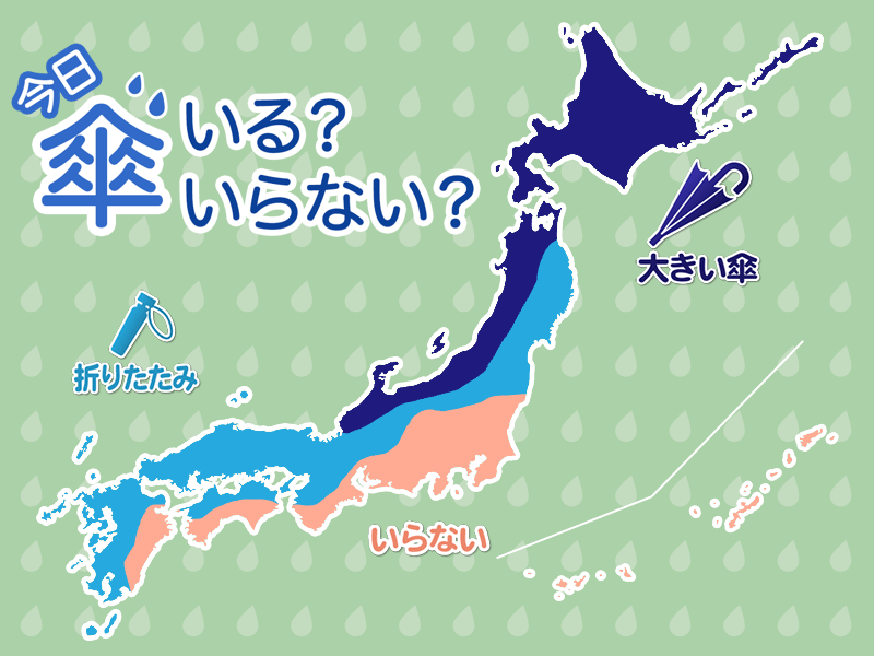 京阪神から瀬戸内、九州にかけても雨の心配があり、折りたたみ傘があると安心です。