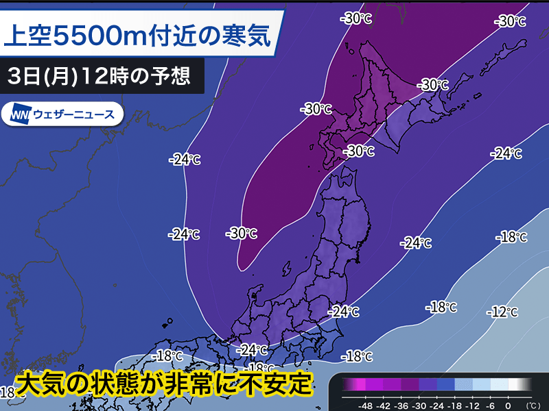 強い寒気が本州上空を通過