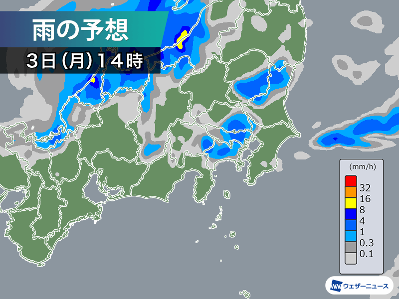 日中も太平洋側の所々で雨が降る見込みです。東京都心や名古屋、大阪など都市部でも天気急変の可能性があるため、外出の際は折りたたみ傘をお持ちください。