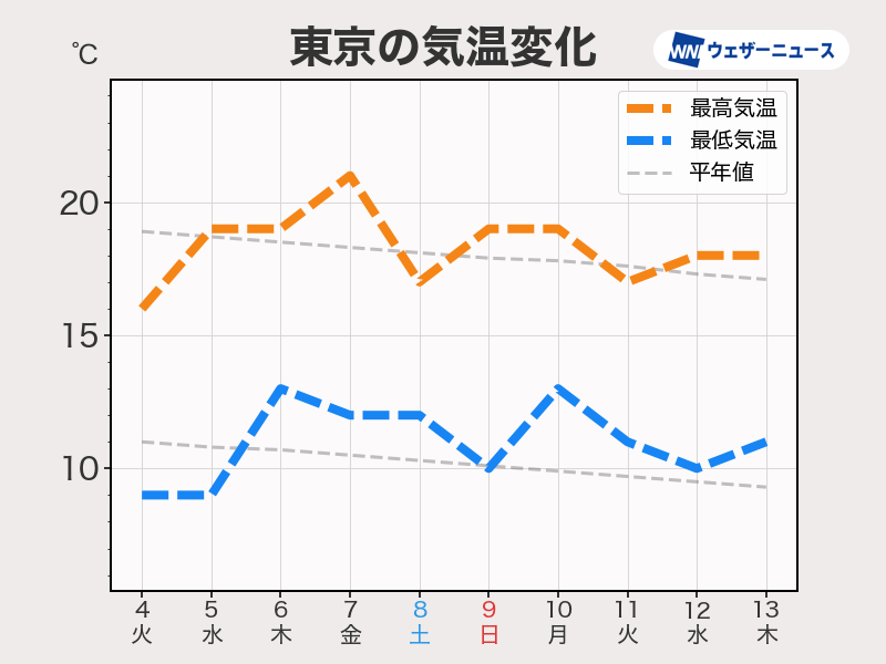 朝晩と昼間の気温差に注意