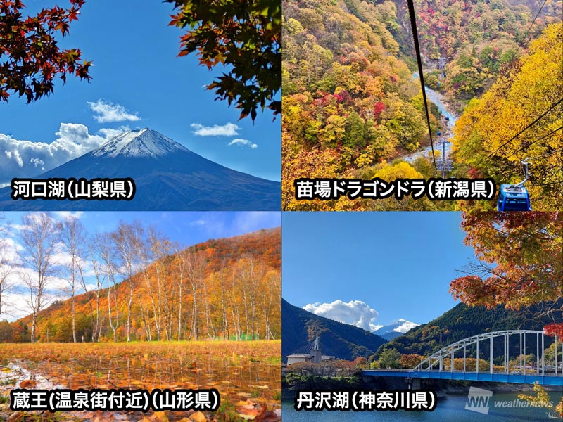 北海道では紅葉シーズン終盤を迎え、東北や関東〜九州の標高が高いエリアなどでも紅葉が見頃となっています。
