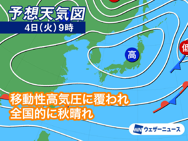 明日11月4日(火) の天気予報