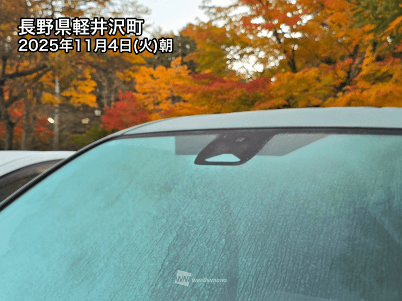 本州では内陸中心に冷え込みが強まり、岩手県宮古市区界で-5.1℃、長野県南佐久郡南牧村・野辺山で-7.0℃を観測しています。その他、秋田で2.9°℃、名古屋で7.9℃、大阪では8.9℃、福岡で10.4℃まで気温が下がり、こちらも11月中旬〜下旬並みの厳しい冷え込みとなりました。