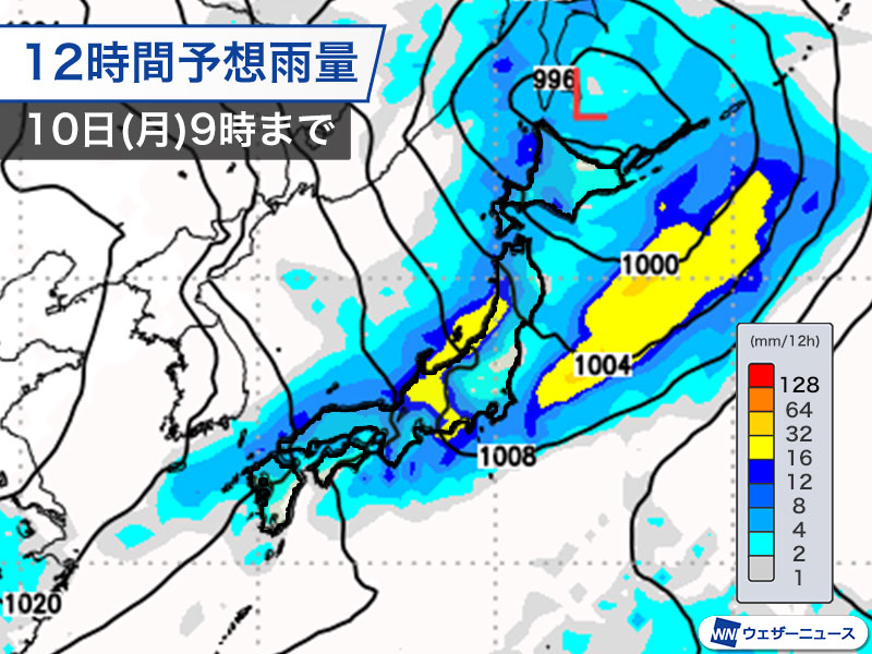 9日(日)から10日(月)にかけて全国的に雨予想