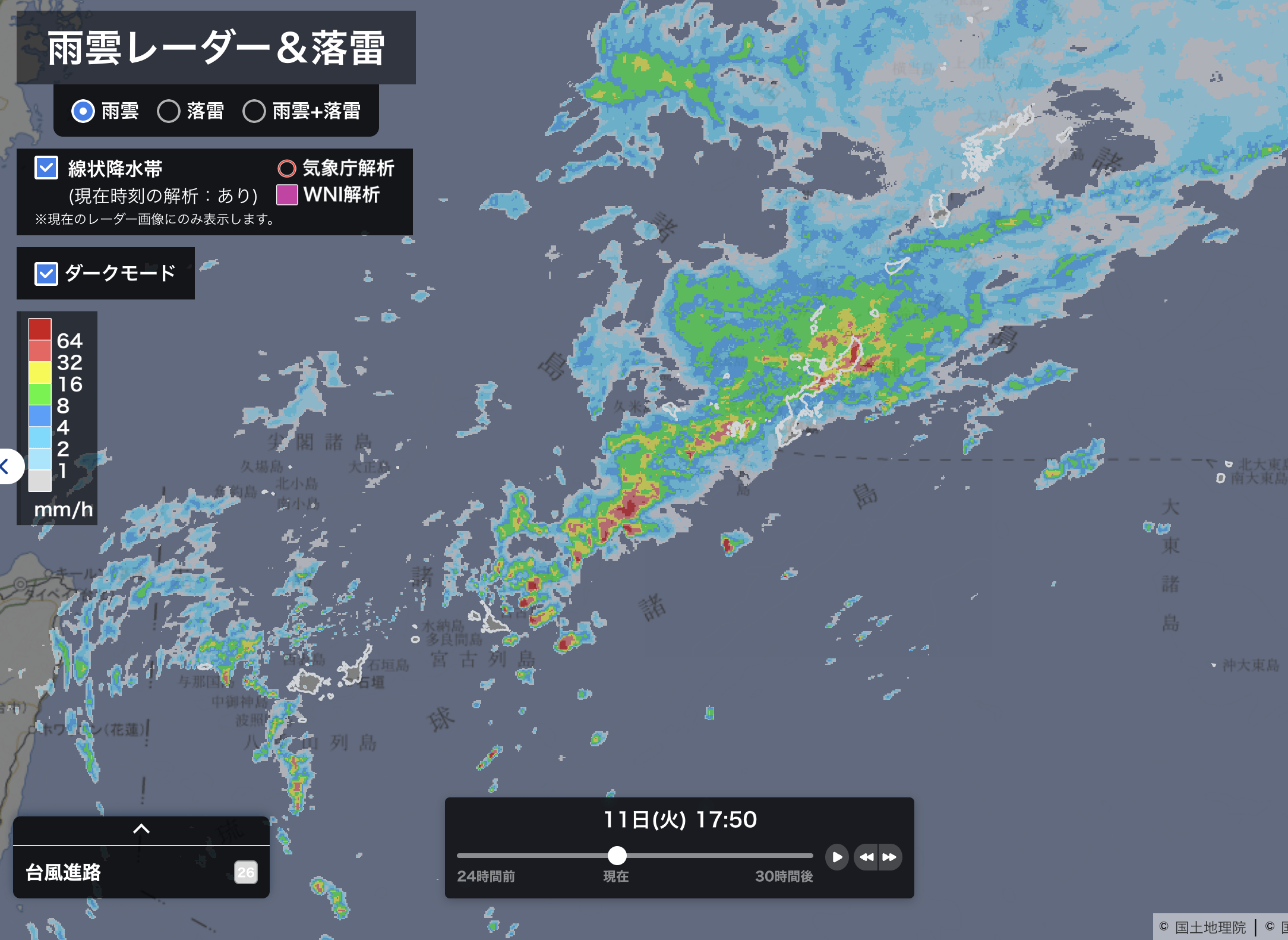 一方、沖縄付近では台風26号と前線の影響で活発な雨雲が通過しました。