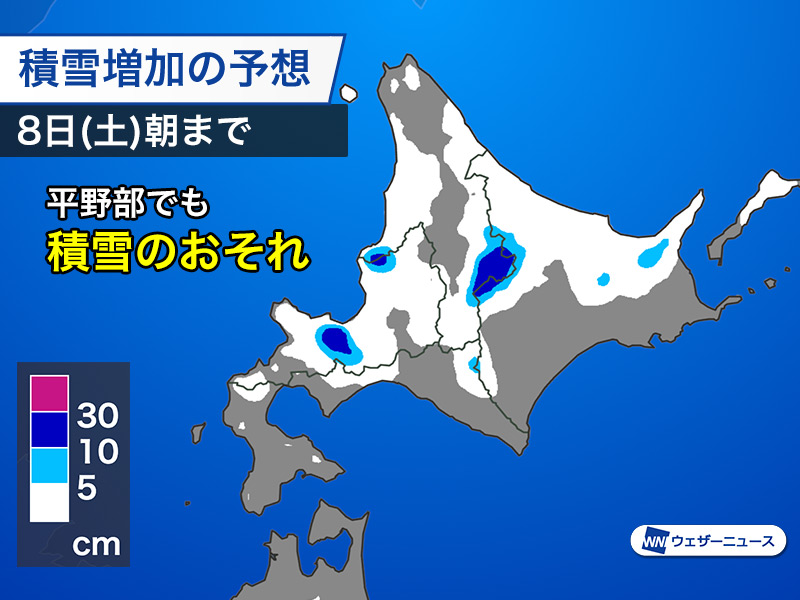 強い寒気の南下と共に平野部でも雨が次第に雪に変わる見込みです。明後日8日(土)の朝にかけて札幌含め平野部でも路面に雪が積もり、山沿いでは積雪が増えて大雪となるおそれがあります。車を運転する場合は冬タイヤの装着が欠かせません。
