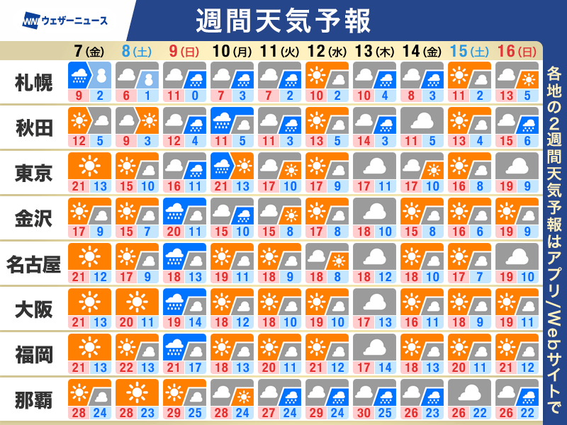 週間天気予報 日曜日は広範囲で雨に 一日の気温差に注意
