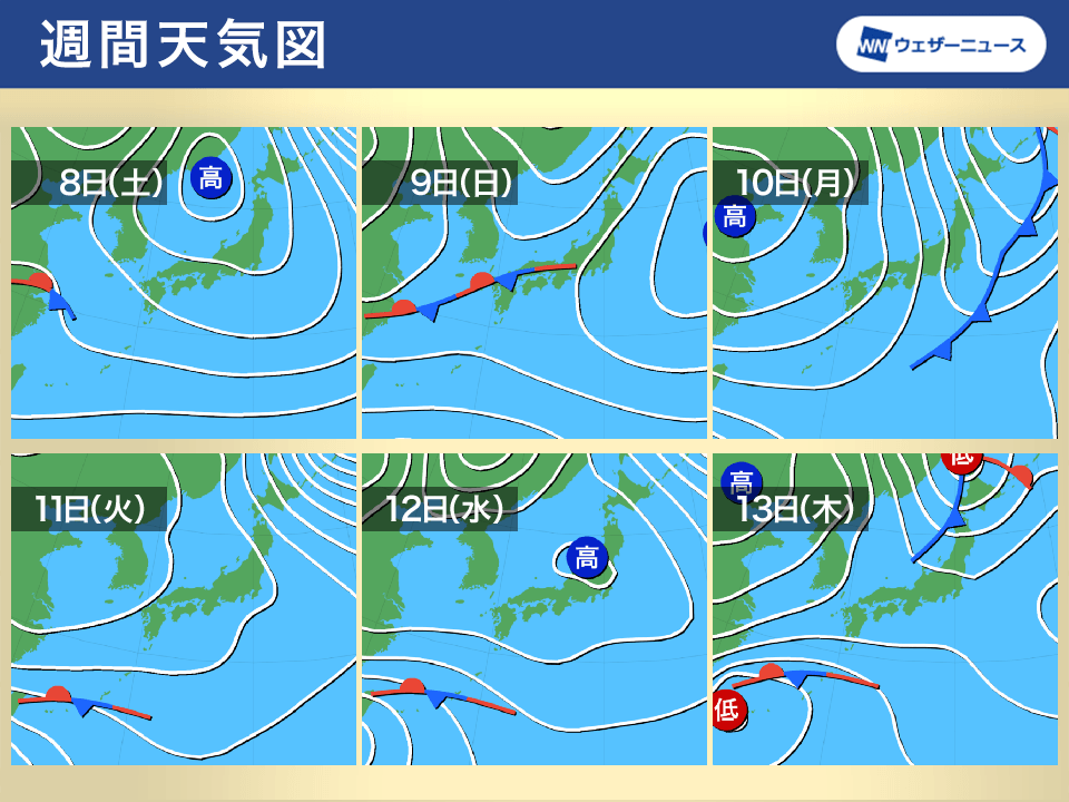 週間天気予報 日曜日は広い範囲で雨予想 一日や日毎の気温差に注意