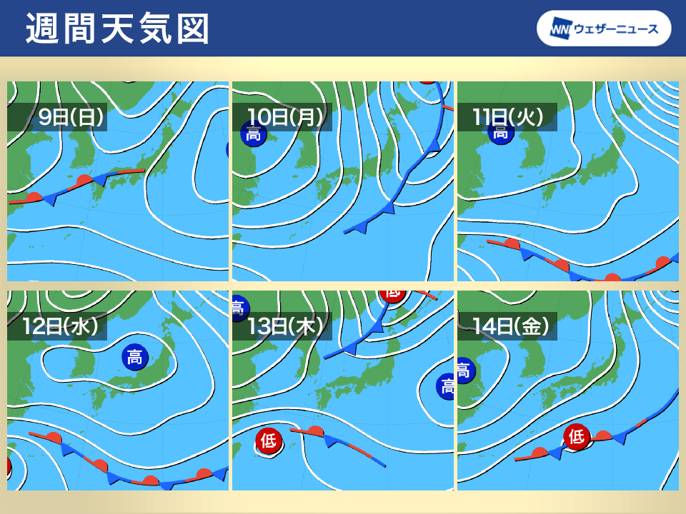 一方、東日本や西日本の太平洋側は、近畿や東海では日本海側から雨雲が流れ込むところがあるものの、来週前半は晴れるところが多そうです。