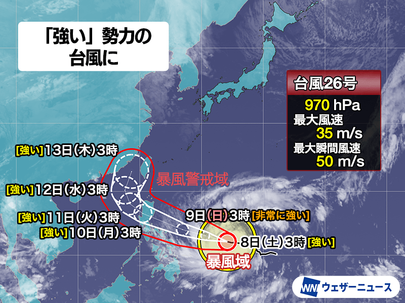 台風26号(フォンウォン)は大型で強い台風に 沖縄は影響に注意