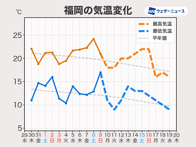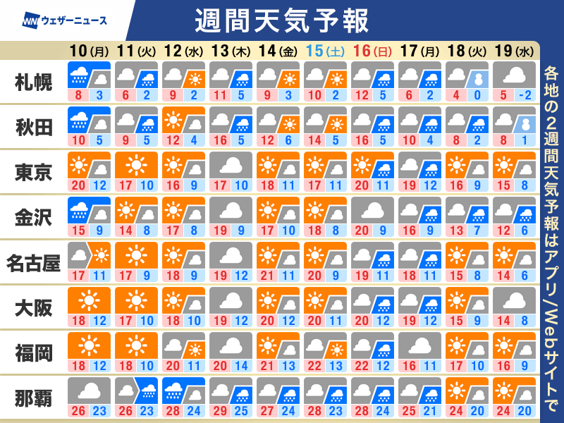 週間天気予報 秋らしい気温変化に注意 沖縄は前線や台風の影響注意