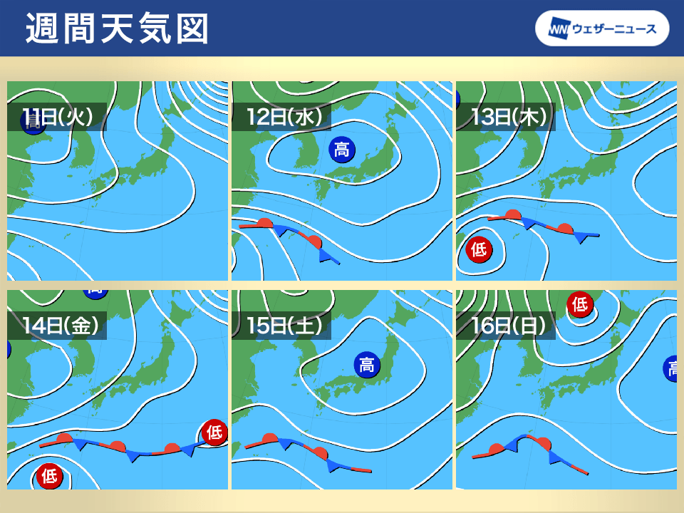 週後半は昼間は20℃前後まで気温が上昇する日もあり、暖かさを感じられそうです。