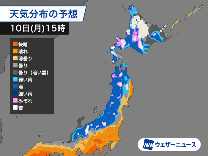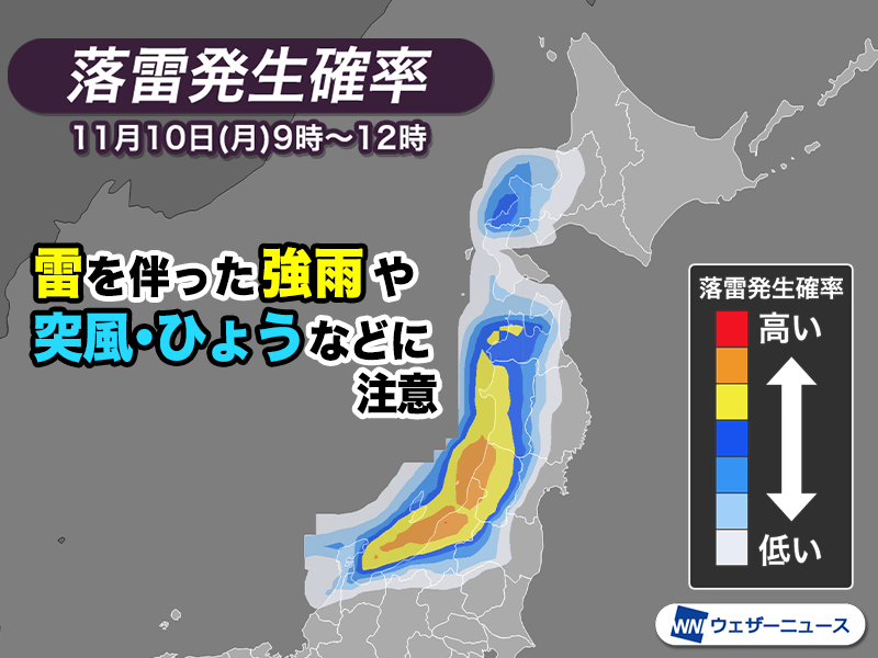 大気の状態不安定で東北〜北陸は雷雨注意 北海道は雨から雪に
