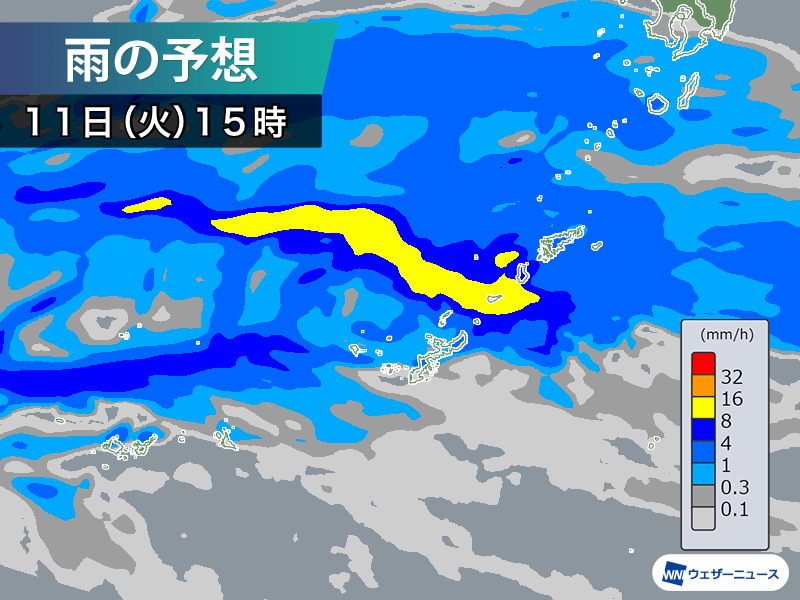 また、沖縄付近に前線が形成され、台風周辺の湿った空気が流れ込んで活動が活発になるとみられます。その後は前線が停滞し、台風本体が近づく13日(木)にかけて断続的に強雨となる見込みです。