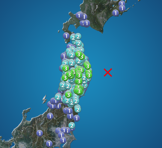 震度3以上を観測した地点