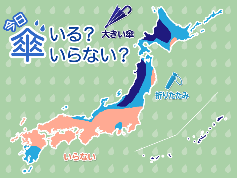 また、北陸西部から山陰にかけて、静岡県東部周辺や九州南部も急な雨の可能性があるので、折りたたみ傘があると安心です。