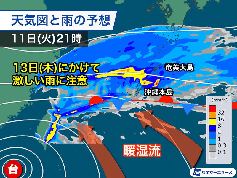 沖縄では局地的に激しい雨