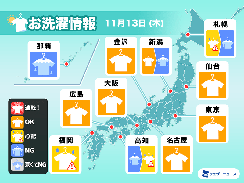 沖縄や奄美は前線や台風の影響で今日も雨が強まりやすい一日です。外干しは難しそうです。