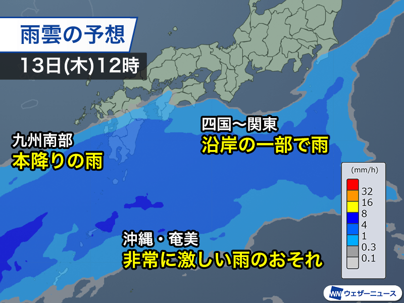 九州は南部を中心に本降りの雨