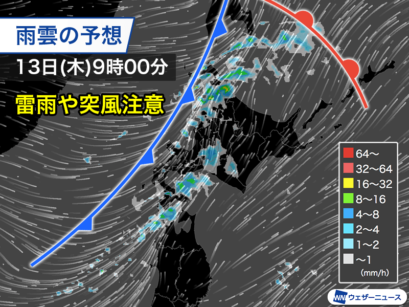 北日本は短時間強雨や霰などに注意