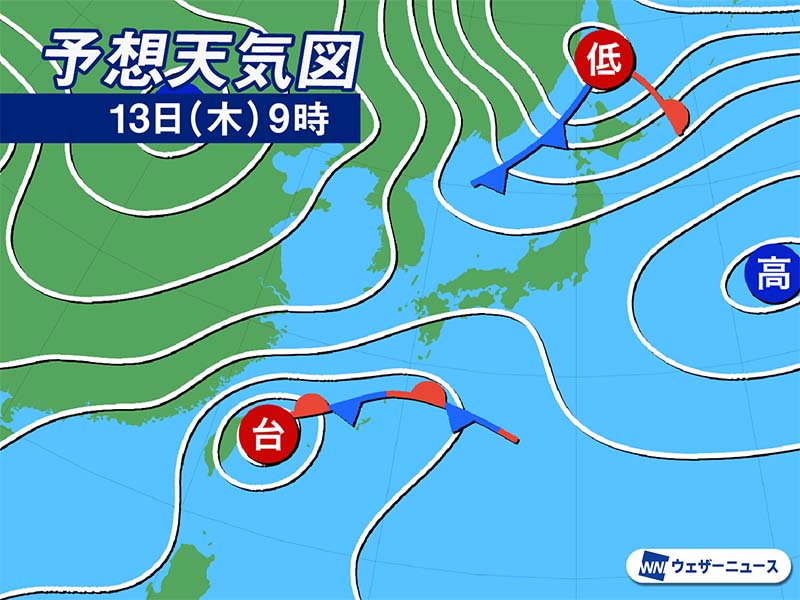 台風が暖かく湿った空気を運び込んでくるため雨の割に気温が高く、蒸し暑く感じそうです。