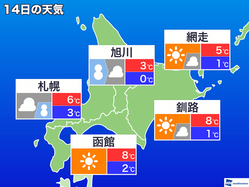 この後は高気圧に覆われるようになり、北海道の天気は回復傾向です。午後は日本海側でも雪のやむところが多くなる見込みです。