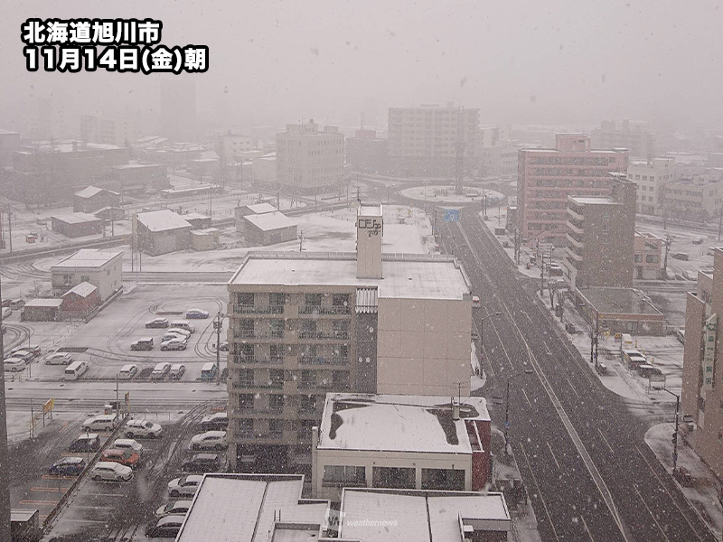 北海道の日本海側は昼頃まで雪の降りやすい状態が続きます。内陸部や山沿いでは雪の積もるところがあるため、路面状況の悪化に注意が必要です。