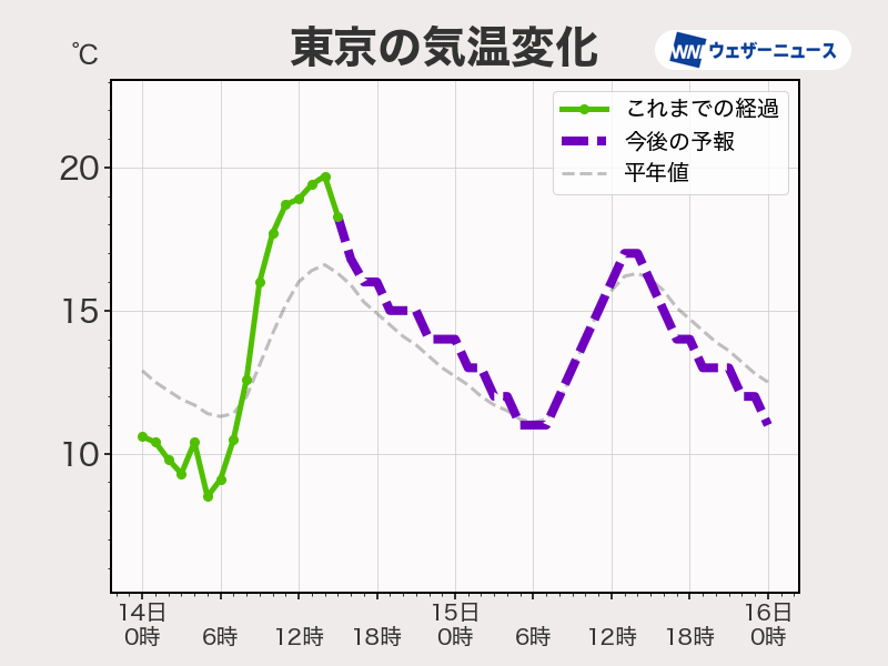 各地とも朝晩は冷えるため、寒暖の変化に注意が必要です。
