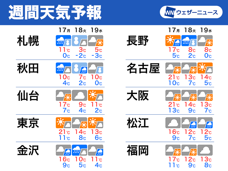 来週は強い寒気で本州の日本海側も雪に 全国的に強風注意