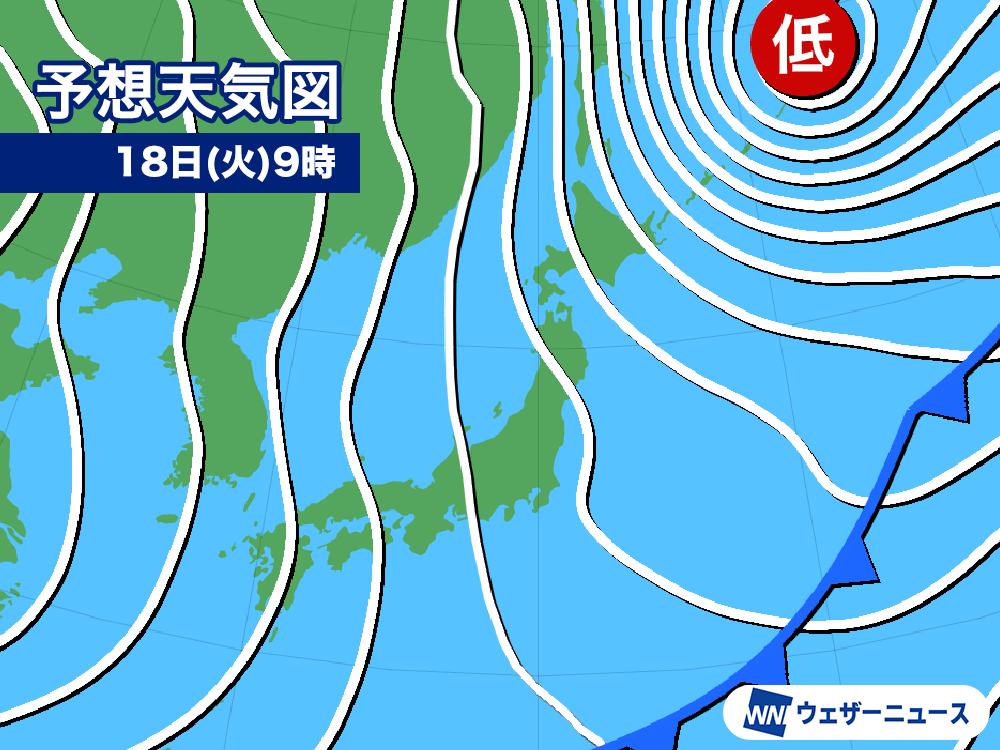 一方、太平洋側は18日(火)以降しばらく晴れたり曇ったりの冬にみられる天気変化となりそうです。空気が乾燥することが予想されますので、体調管理や火の取り扱いに注意してください。
