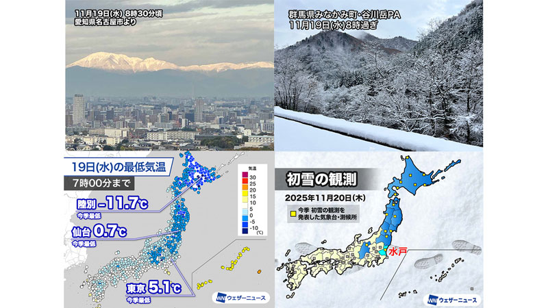 20日(木)は水戸で初雪を観測 関東地方で今年最初