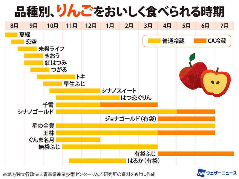 品種によっても変わる? 品種別、りんごをおいしく食べられる時期