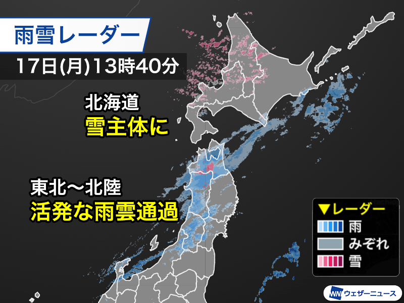 北海道は雪に変化 雨の中心は東北、北陸へ 広範囲で強風続く