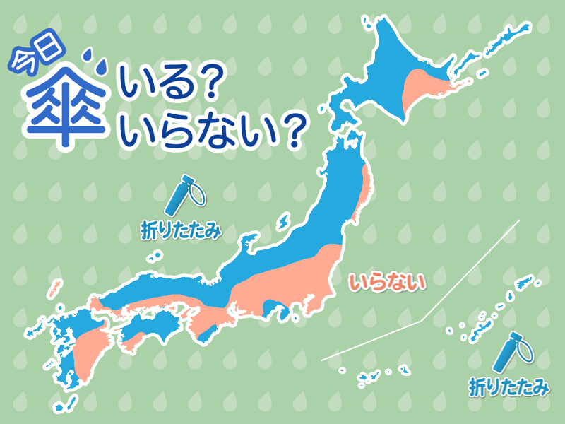 今日は大きい傘が必要なほど本降りの雨や雪が長い時間降り続く所はなさそうです。