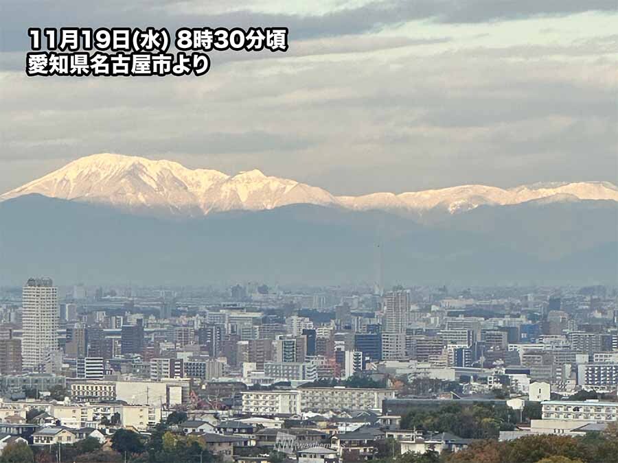 彦根地方気象台からも雪の積もっている様子が確認でき、平年より1日早く、昨年より12日早い初冠雪を発表しています。西日本に位置する山で初冠雪が観測されるのは今季初めてです。