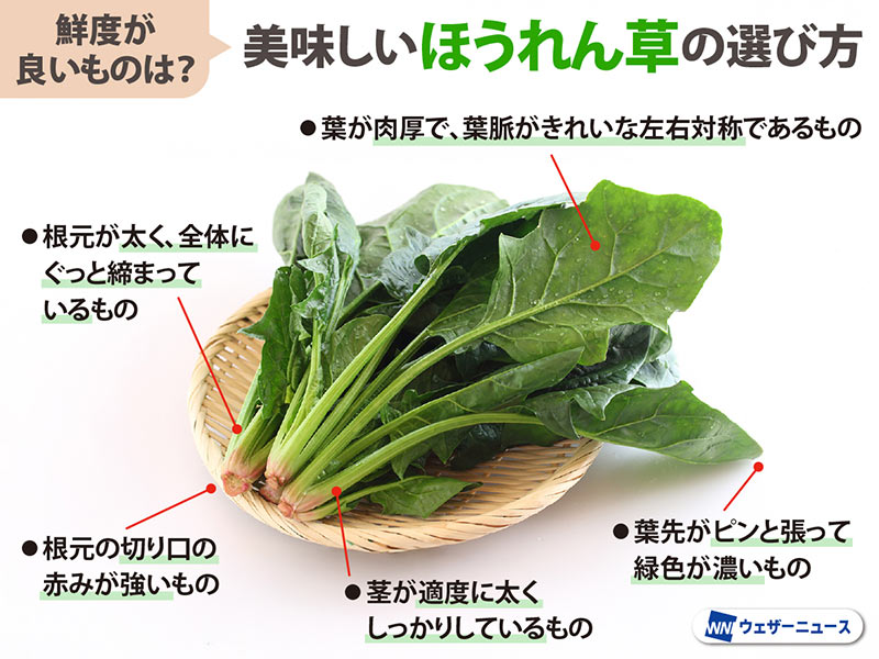 甘みや味が濃くなる秋冬のほうれん草。上手に選んで寒さに備えましょう。