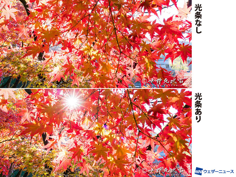 むしろ意識してほしいのは、紅葉越しの透過光がつくる『光条』です」(水野さん)