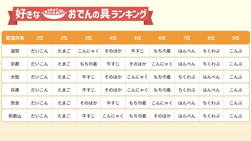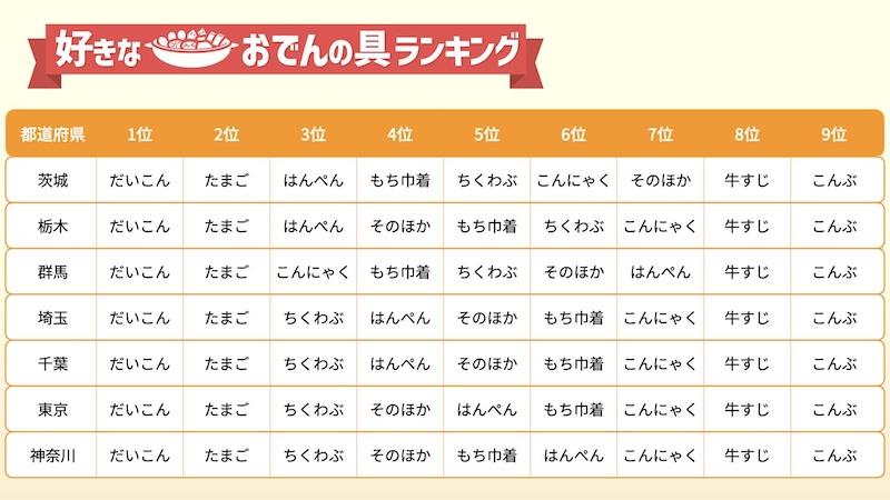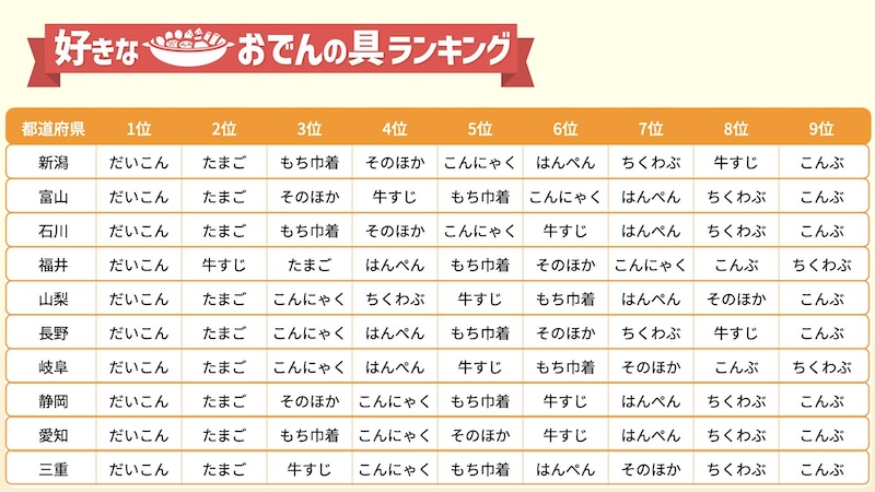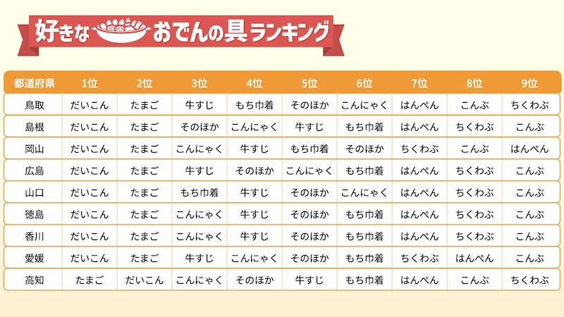 47都道府県別 おでん好きな具ランキング