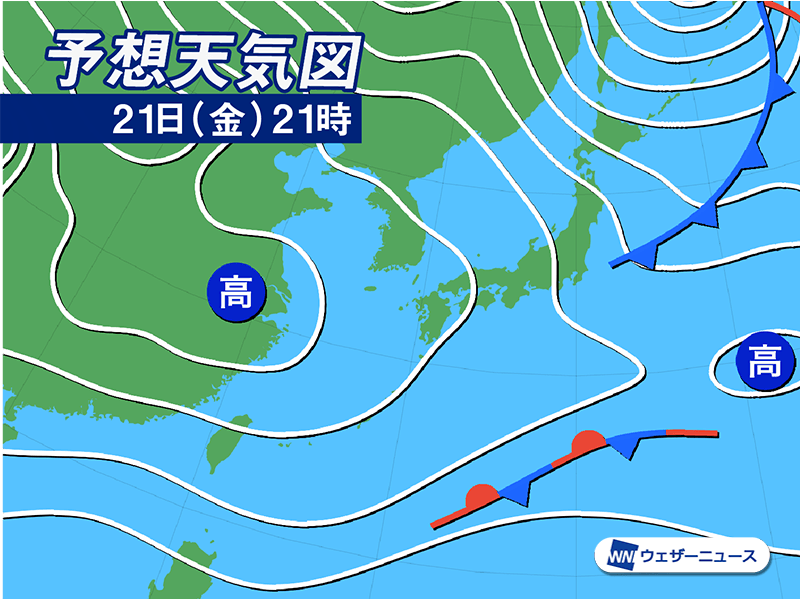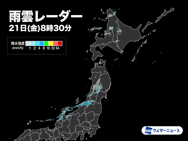 サハリン付近を通過する低気圧から延びる寒冷前線が北日本や北陸を通過して未明から雨や雪を降らせています。前線通過時に発達した雨雲が流れ込んだ地域では一時的に雨が強まり、新潟県のアメダス村上では1時間に13mm、アメダス高根では10mmのやや強い雨を観測しました。新潟市内からは叩きつけるような激しい雨によって道路が冠水している報告も寄せられています。