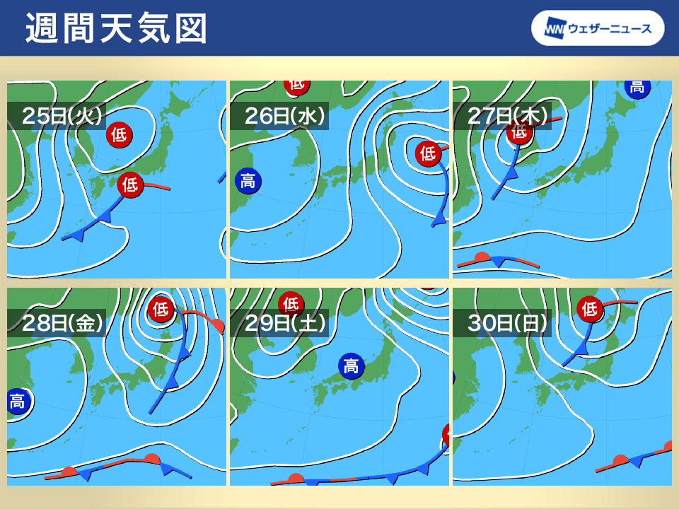 低気圧や前線が次々通過