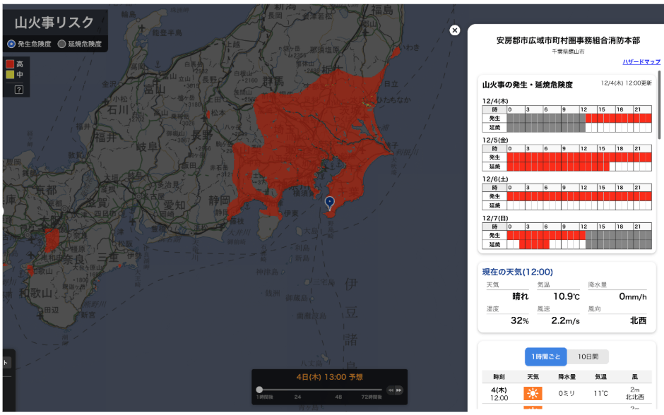 >>【詳細】自治体・消防向けに林野火災危険度予測サービス