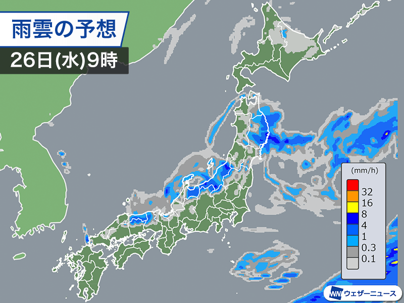 西日本の太平洋側や東海は日差しが届くものの、所々でにわか雨がある見込みです。空の変化にお気をつけください。