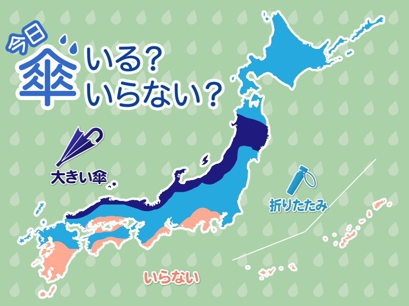 東北南部太平洋側から九州北部にかけては、日差しが届いてもにわか雨に要注意です。