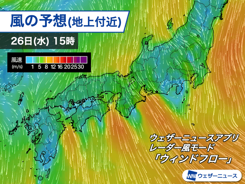 今後は風が強まる にわか雨も心配